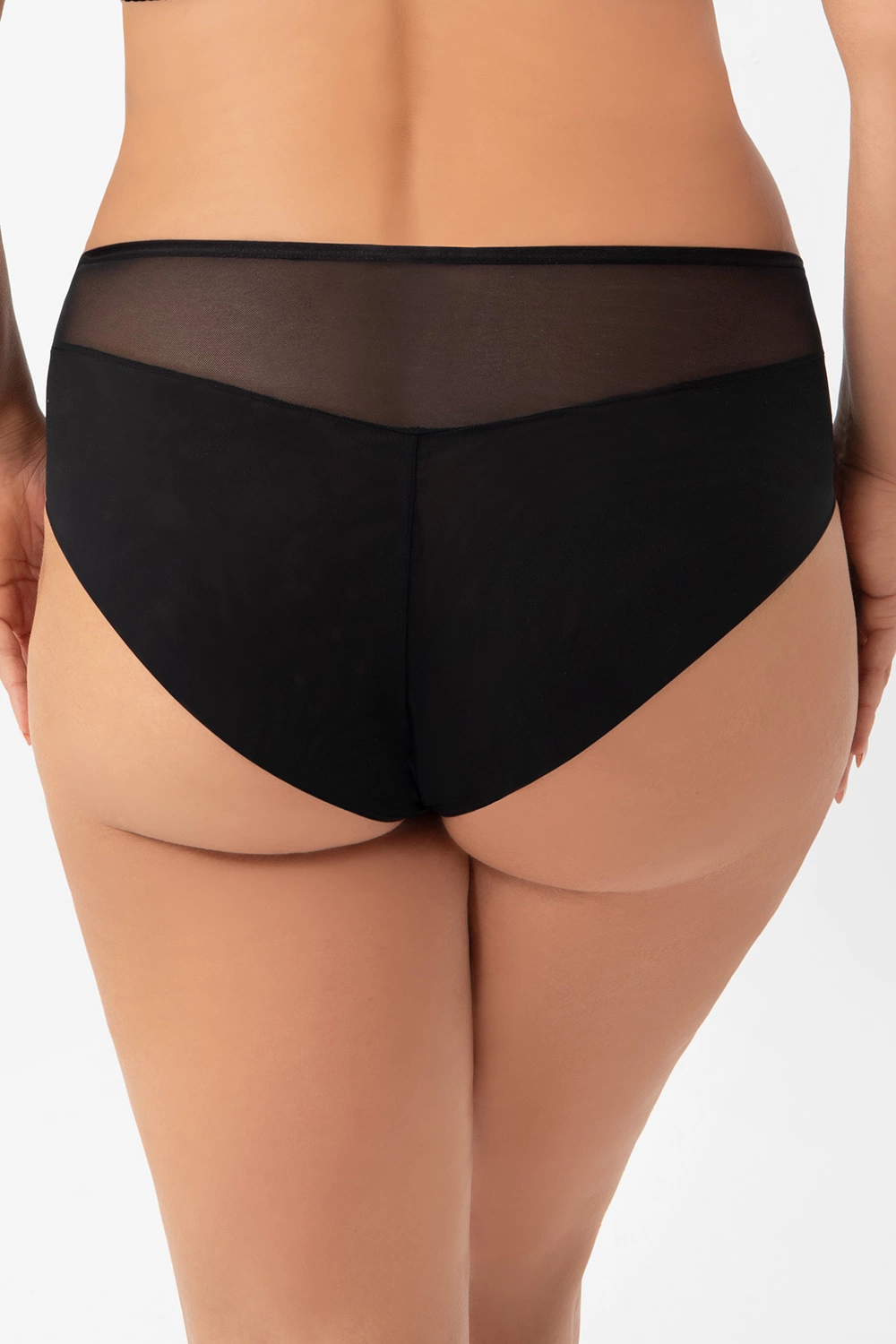 - tył z tiulu elastycznego wykończony na gładko, tak aby majtki nie odznaczały się pod ubraniem