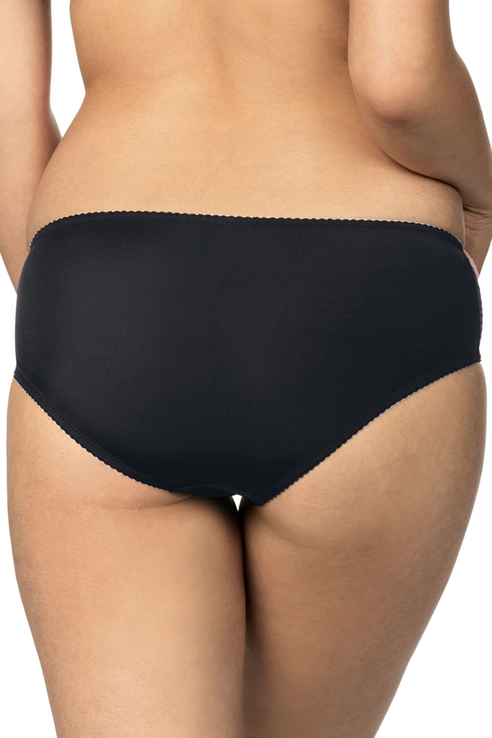 Eleganckie figi. W całości wykonane są z mikrofibry w drobne kropeczki. Z przodu wstawki z subtelnej koronki. Nogawki z tyłu wykonane są z podwójnej siateczki.