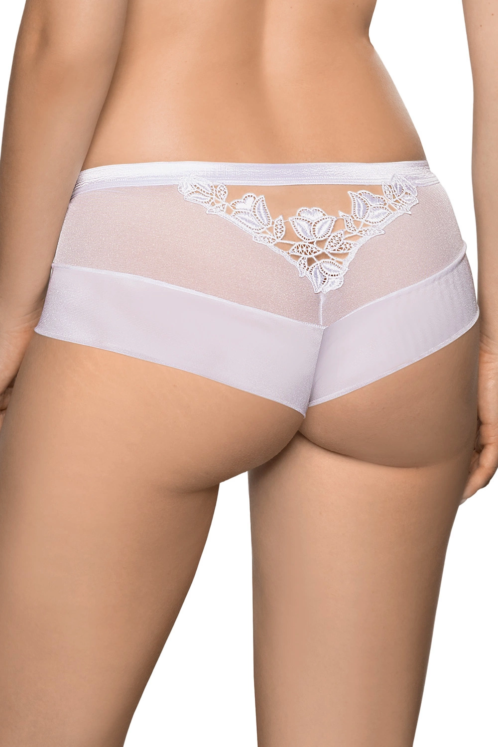 Figi Róża Lisbet to propozycja dla osób szukających codziennej wygody w kobiecym wydaniu. Klasyczny krój zapewnia komfortowe krycie i naturalne dopasowanie do sylwetki. Przód zdobi delikatna koronka, która subtelnie urozmaica gładką linię majtek. Tył pozostaje gładki, dzięki czemu bielizna układa się równo pod ubraniem. Elastyczna dzianina pracuje z ciałem, a miękkie wykończenia w pasie i przy wycięciach zwiększają wygodę noszenia. Lekka koronkowa struktura na panelach dodaje całości lekkości bez rezygnacji z funkcjonalności. Wkładka w kroku z dodatkiem bawełny dba o uczucie świeżości przez cały dzień. To uniwersalny model, który sprawdzi się na co dzień i pod różne fasony odzieży.