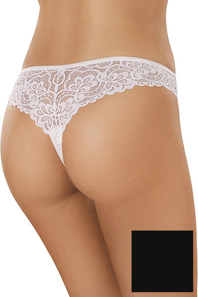 Wspaniałe, bogato zdobione delikatną i gustowną koronką stringi są wykonane z najlepszej gatunkowo bawełny. Tył wykonany jest z uroczej koronki, któ ra ró wnież zdobi przó d ciekawą wstawką. Skład: 95% bawełna, 5% elastan