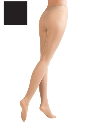 Ekskluzywne rajstopy wykończone ozdobną częścią majteczkową. Wykonane z włókna Lycra podwójnie oplecionego jedwabiem poliamidowym, co znacznie podnosi trwałość i komfort noszenia. Szyte płaskim szwem.