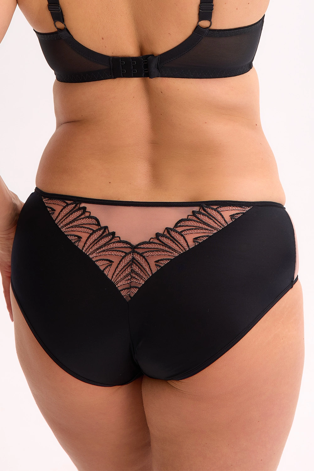 Figi Gaia 1312P Imani to klasyczny fason zaprojektowany z myślą o codziennym komforcie. Krój zapewnia wygodne, stabilne ułożenie na biodrach i pełniejsze okrycie, dzięki czemu dobrze sprawdza się na co dzień. Elastyczna talia i wykończenia pracują z ciałem, nie krępując ruchów. Materiał jest miękki w dotyku i sprężysty, co ułatwia dopasowanie do sylwetki. Wkładka z dodatkiem bawełny wspiera higienę i podnosi komfort całodziennego noszenia. Detale wykończenia są stonowane i estetyczne, co pozwala łatwo łączyć figi z różnymi biustonoszami. To praktyczny wybór do codziennych stylizacji, oferujący równowagę między prostotą a wygodą. Figi są odpowiednie do noszenia zarówno pod luźniejsze, jak i bardziej dopasowane ubrania. Sprawdzą się dla osób ceniących sprawdzone, klasyczne rozwiązania w bieliźnie. Całość utrzymana jest w uniwersalnym, ponadczasowym charakterze, który nie wychodzi z mody.