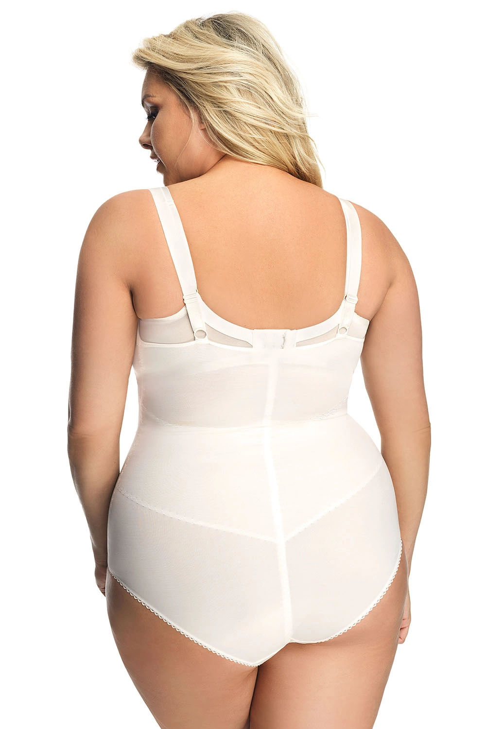 Efektowne półbody, idealnie korygujące brzuch, pośladki i linię talii, o konstrukcji umożliwiającej noszenie razem z indywidualnie dobranym, ulubionym biustonoszem. Uszyte z mocnej, elastycznej dzianiny, z przodu wzmocnione dodatkową siateczką. Całość w jednolitym kolorze. Zastosowano regulowane ramiączka oraz wygodne zapięcie na haftki na dole.