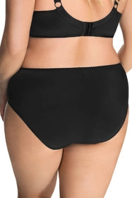 Klasyczne figi wykonane z gładkiej dzianiny. Na przodzie ozdobione dwoma wstawkami z koronki elastycznej, a po środku malutką kokardką. Nogawki wykończone ozdobną gumokoronką.