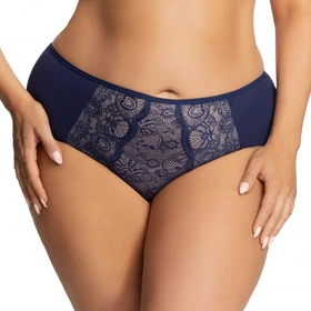 Klasyczne figi wykonane z gładkiej dzianiny. Na przodzie ozdobione dwoma wstawkami z koronki elastycznej, a po środku malutką kokardką. Nogawki wykończone ozdobną gumokoronką.