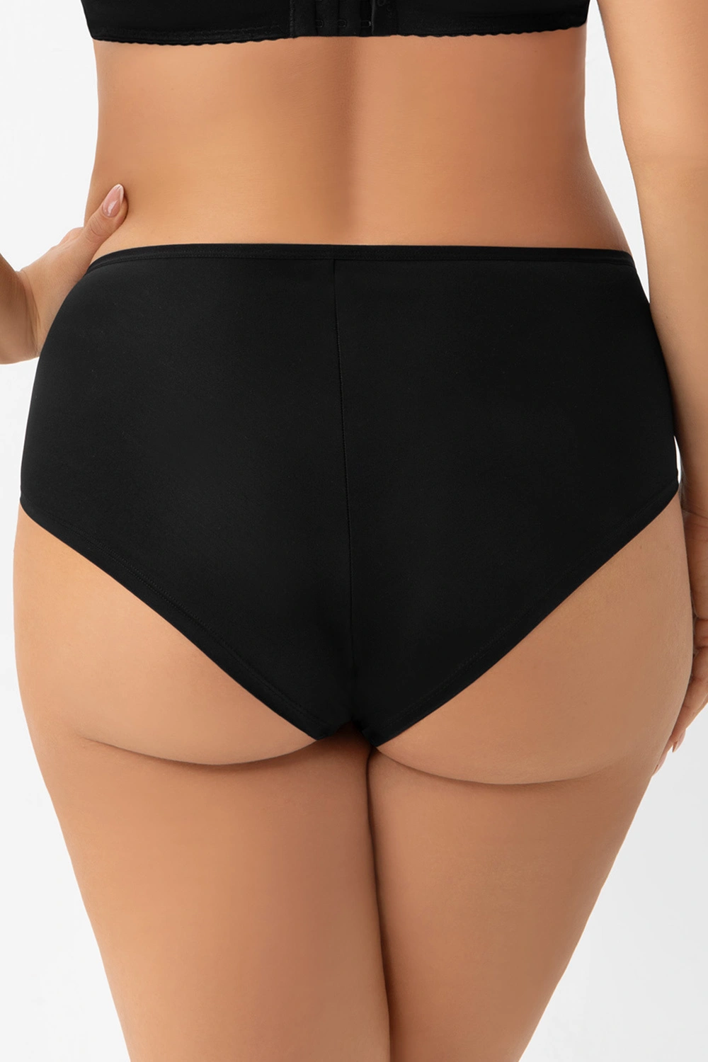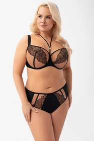 Figi Gorsenia K965 Vida łączą wygodę wysokiego stanu z subtelną koronką, która dodaje lekkości i elegancji. Przód ma gładki panel zapewniający poczucie stabilności, po bokach uzupełniony koronkowymi wstawkami na delikatnej siateczce. Tył pozostaje prosty i gładki, dzięki czemu bielizna ładnie układa się pod ubraniem. Elastyczny pas oraz miękkie wykończenia przy udach wspierają dopasowanie i komfort przez cały dzień. Materiał jest sprężysty i przyjemny w dotyku, pracuje z ciałem i nie krępuje ruchów. Klasyczne wycięcia zapewniają dobre przyleganie bez zbędnego ucisku. To praktyczny wybór na co dzień, który łatwo łączy się z biustonoszami z tej samej linii lub inną ulubioną bielizną. Jeśli szukasz fig o wyższym stanie z kobiecym detalem, ten model będzie bezpiecznym i estetycznym rozwiązaniem.