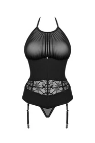 Masz ochotę na stylizację, która rozgrzeje atmosferę, ale brakuje Ci konkretnego pomysłu? Nie musisz się już martwić! Gorset Serafia został stworzony, żeby kusić! Nietuzinkowe połączenie lekko prześwitującej tkaniny na biuście oraz intrygującej, roślinnej koronki pnącej się wokół brzucha i pleców zrobi piorunujące wrażenie. Pikanterii dodadzą czarne paski do pończoch, które możesz odpiąć w każdym momencie. Poczuj się swobodnie, oddając się rozkosznym chwilom.