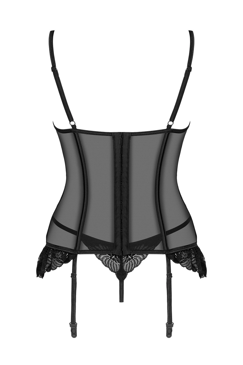 Zostań królową nocy! Romantyczny wzór tego gorsetu oraz klasyczny krój pięknie wysmuklają sylwetkę. Kwiatowa koronka zdobi piersi i biodra. W komplecie znajdują się pasujące stringi. Dodając do nich gładkie pończochy S800, stworzysz nocną stylizację wartą grzechu!