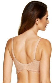 Zmysłowy biustonosz usztywniany doskonale uwydatnia i podtrzymuje piersi. Miseczki pokryto elegancką koronką o kwiatowym wzorze.