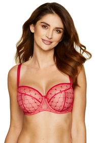 Zmysłowy biustonosz z miękkimi miseczkami zapewnia atrakcyjnie wyglądający dekolt. Miseczki wykonano z nietuzinkowego plenu pokrytego haftowanymi serduszkami.