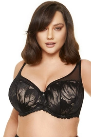Zjawiskowy biustonosz usztywniany podtrzymuje piersi, nadając im piękny kształt. Wykonany z pianki gorseciarskiej pokrytej nietuzinkową koronką o kwiatowym motywie.