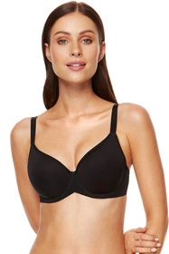 Klasyczny biustonosz typu spacer delikatnie modeluje i unosi biust. Wykonany jest z gładkiej dzianiny. Bieliźnie uroku dodaje delikatna wstążeczka umieszczona między miseczkami.