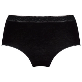 Pełne figi, wykonane z komfortowej dzianiny. Wykończone ozdobną gumokoronką z kwiatowym motywem. Spodobają się każdej Pani, dla której podstawą jest wygoda i prostota. Niewątpliwą zaletą jest też dostępność tego modelu w do rozmiaru XXL. Skład: 90% bawełna, 10% elastan.
