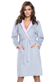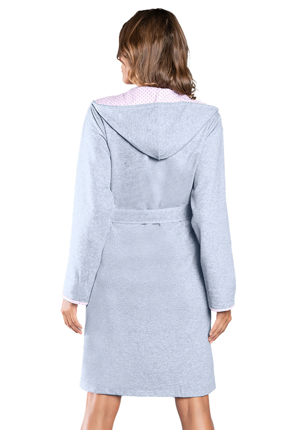 Szlafrok o luźnym kroju z kapturem, kieszeniami, wiązany paskiem. Regulowana długość rękawów. Wyjątkowy szlafrok na każdą porę roku. Długość do kolan eksponuje nogi a pasek podkreśla talię. Model łączy w sobie zabawę, zmysłowość i wygodę. Idealny dla kobiet, które lubią relaks w domowym zaciszu otulone miękkością i ciepłem.