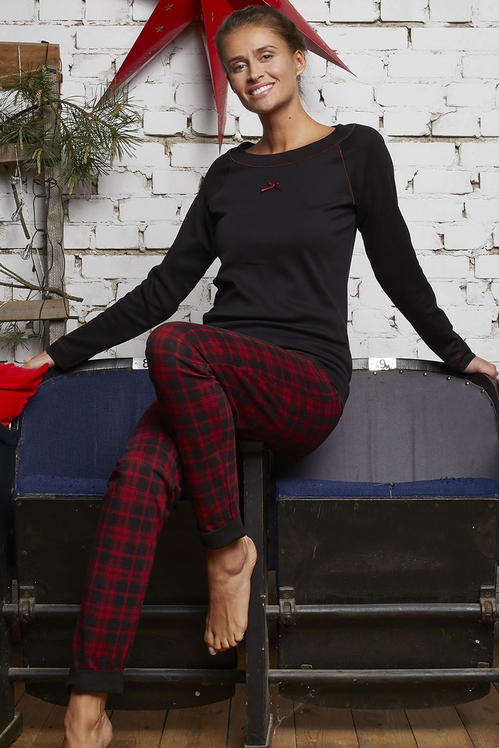 - Długie spodnie w kratę