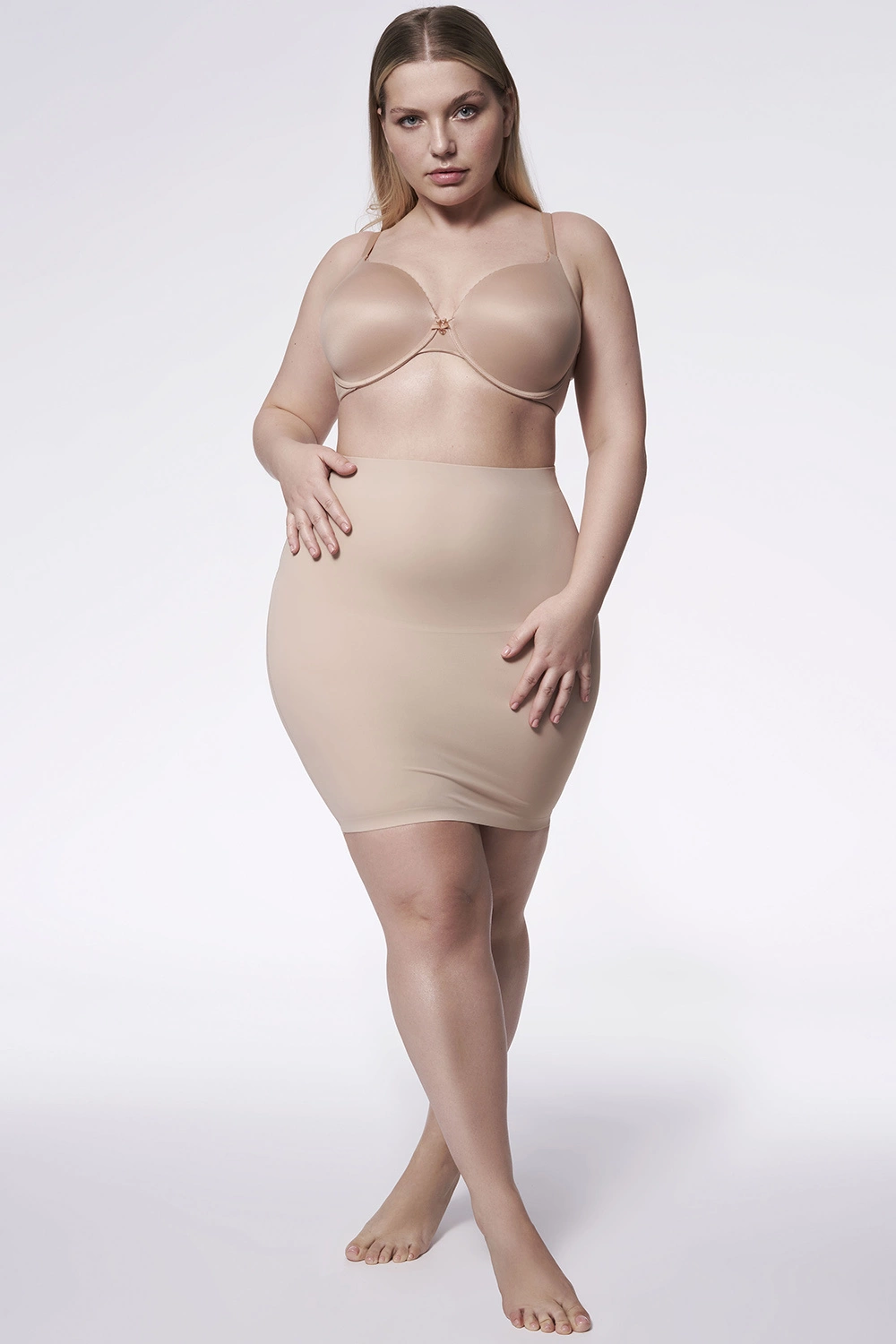 Modelująca sylwetkę półhalka - niewidoczna pod ubraniem dzięki bezszwowej, nowoczesnej technologii wykończenia brzegów.