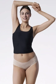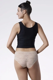 Niezwykle kobiecy model z koronki, która jest tak przyjemnie miękka i lekka, że niemal jej nie czujesz. Figi mają delikatny, muszelkowy brzeg. Nie odznaczają się pod obcisłym ubraniem dzięki bezszwowemu, laserowo ciętemu wykończeniu nogawek i pasa. Figi w kroku mają wszytą wstawkę higieniczną z baweły.