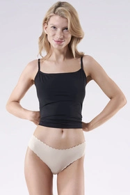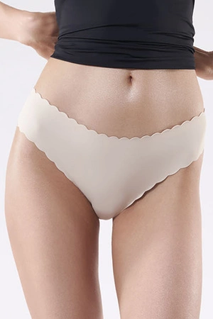 Klasyczne, gładkie figi z ozdobnym brzegiem wykończonym muszelkowo. Nie odznaczają się pod obcisłym ubraniem dzięki bezszwowemu, laserowo ciętemu wykończeniu w pasie i nogawkach. Figi posiadają w kroku wkładkę z bawełny.