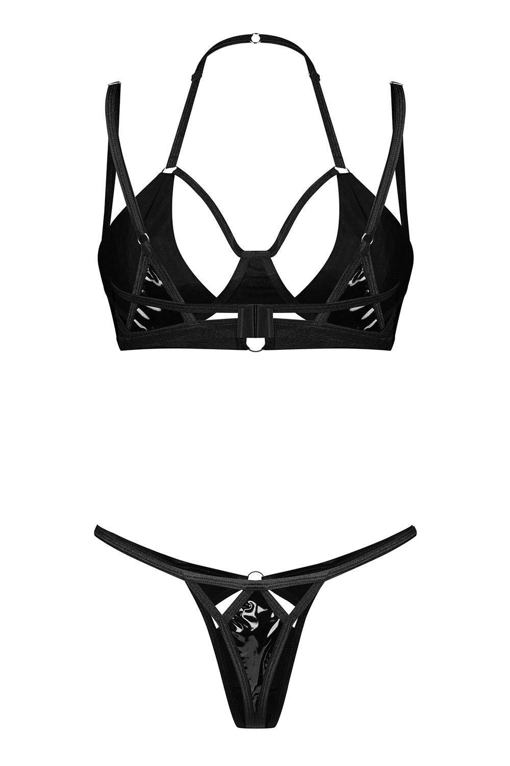 - komplet wykonany jest z błyszczącego materiału imitującego lateks