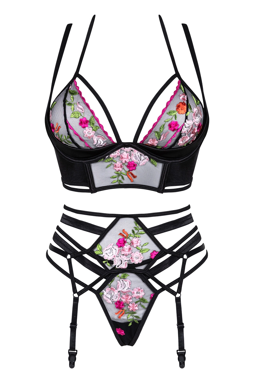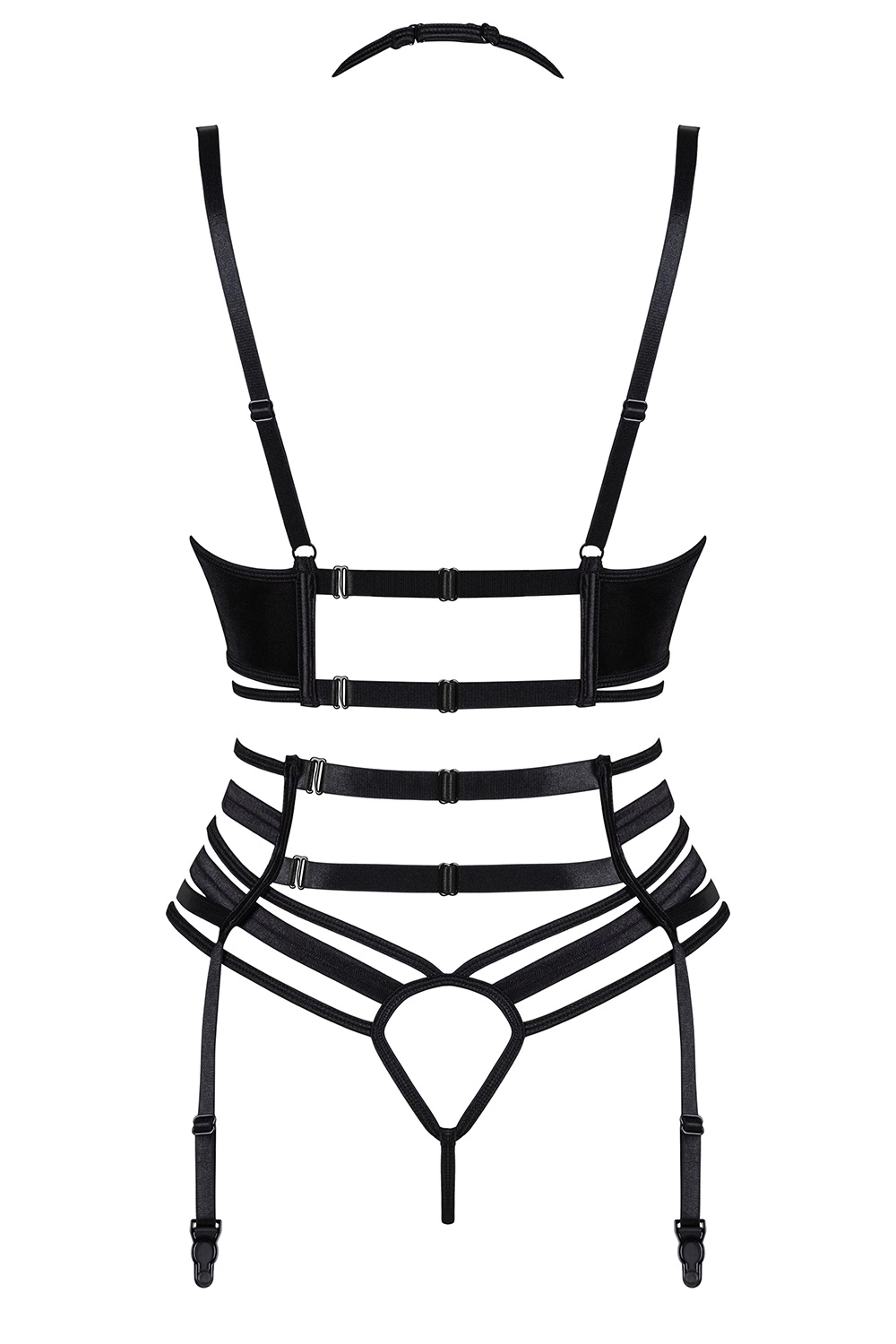 - w skład kompletu wchodzą biustonosz, stringi i pas do pończoch