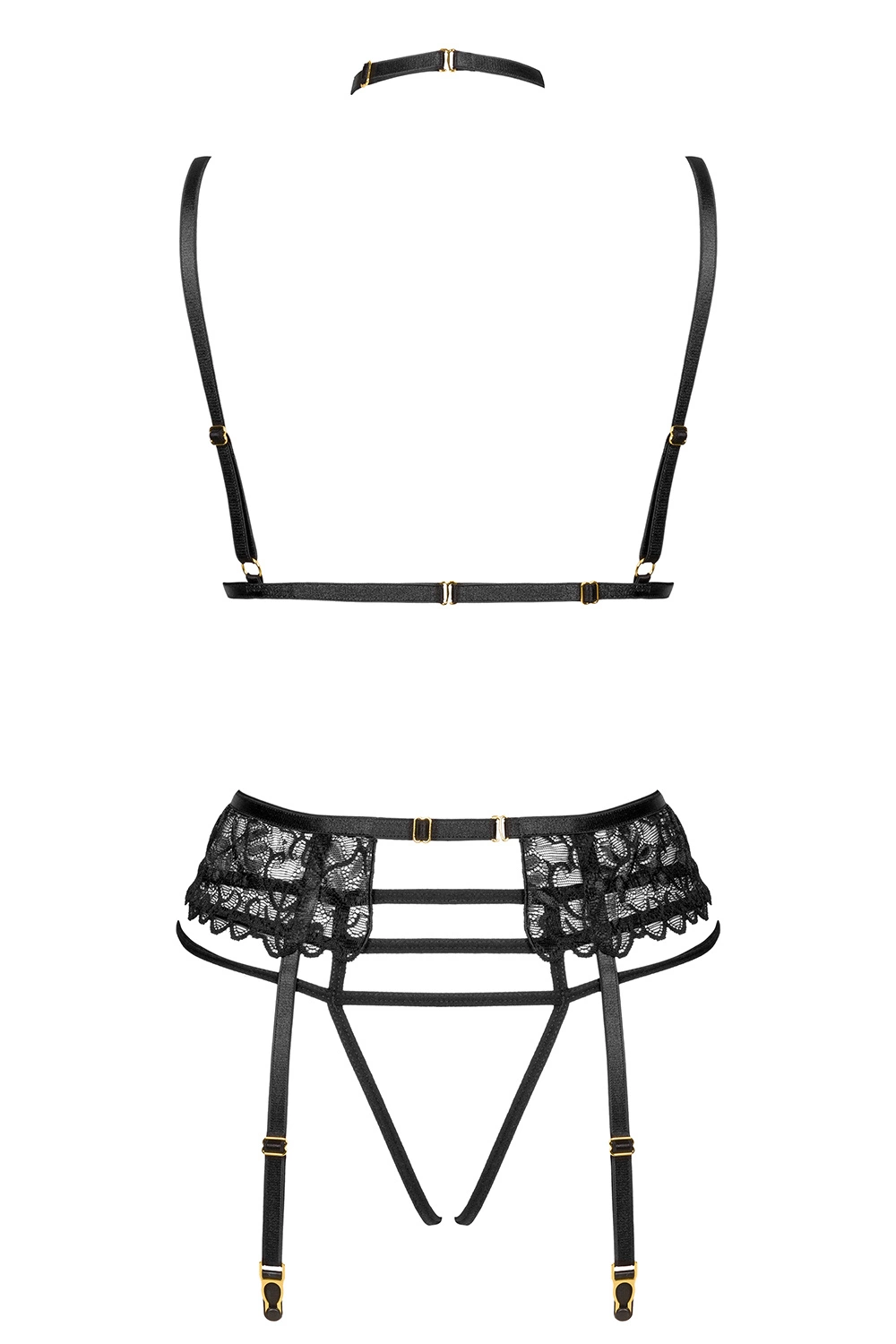 - zestaw zawiera biustonosz, stringi i pas do pończoch