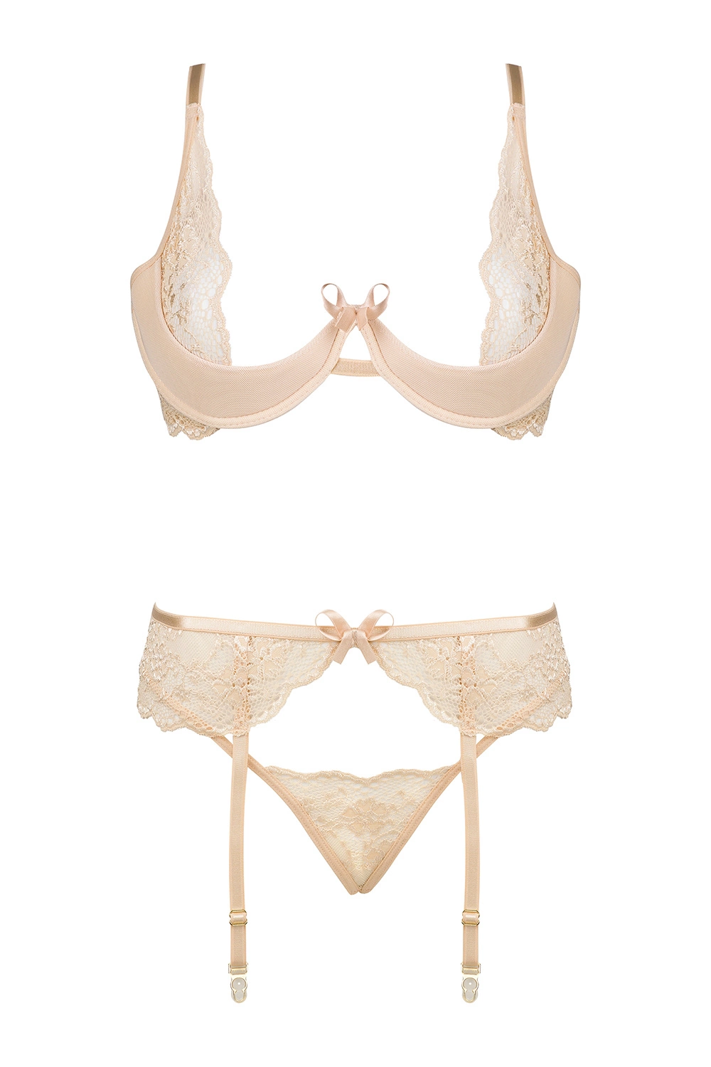 - komplet zawiera biustonosz, pas do pończoch i stringi