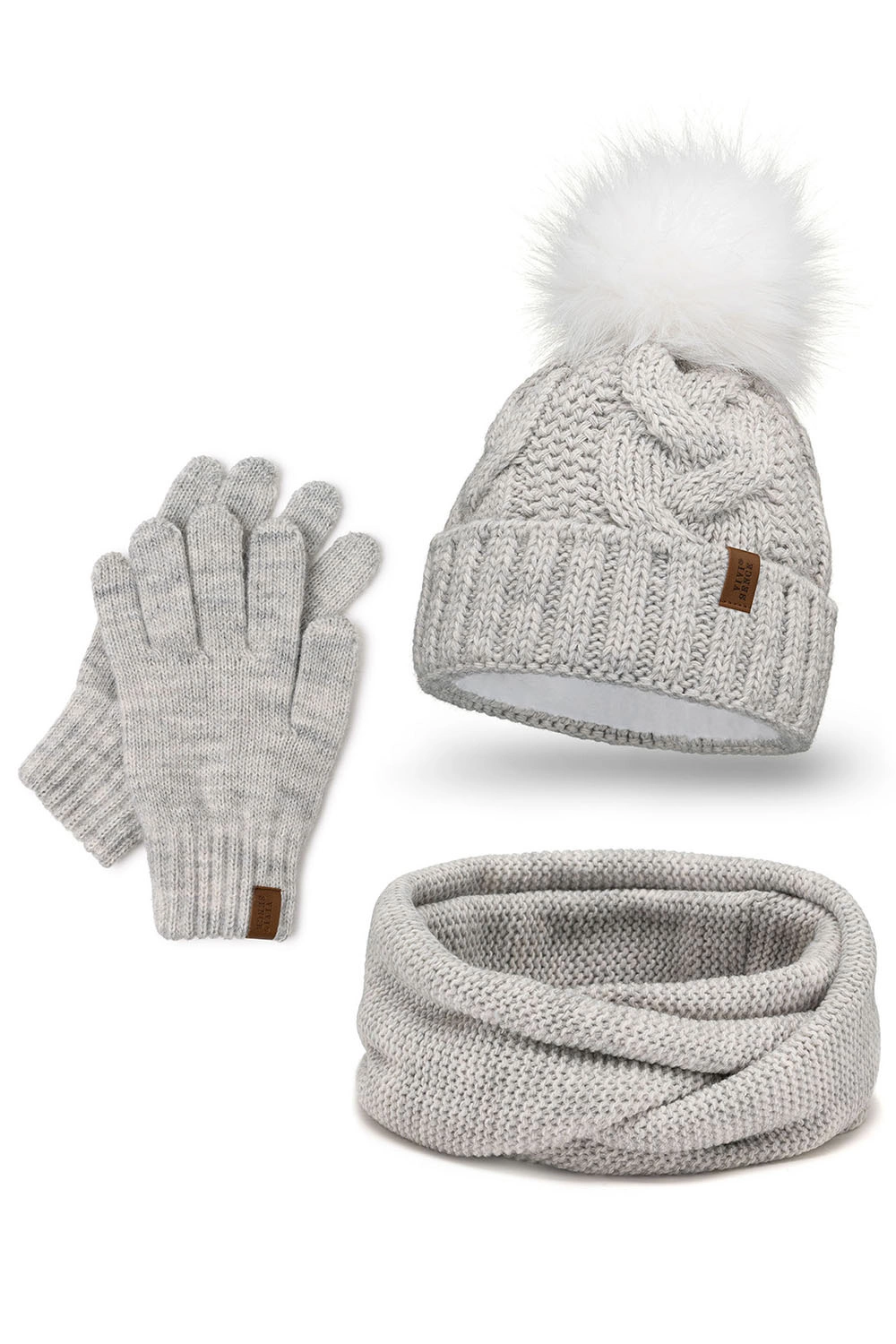 Modny komplet: czapka z pomponem, komin i rękawiczki.