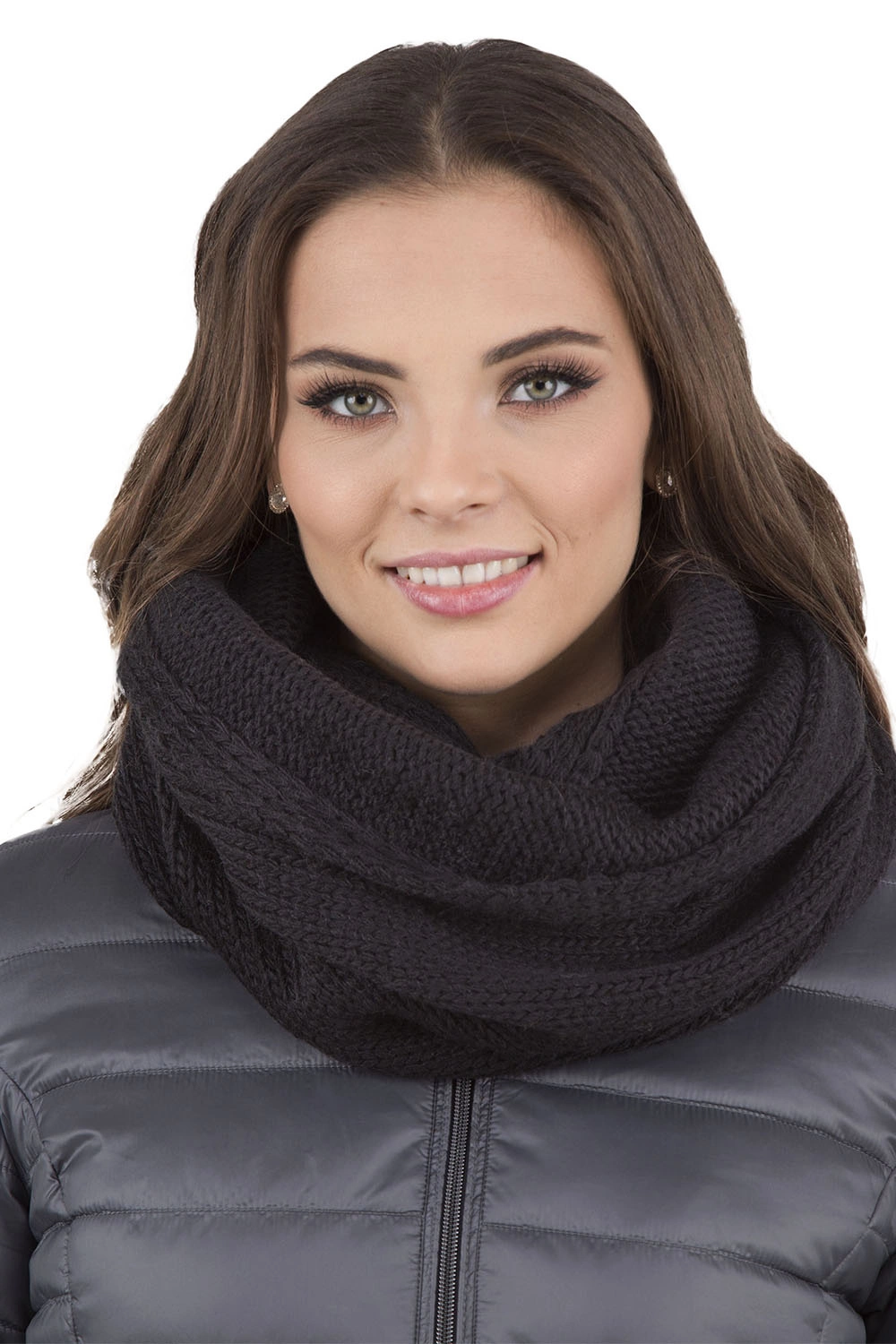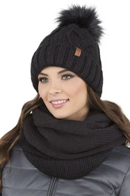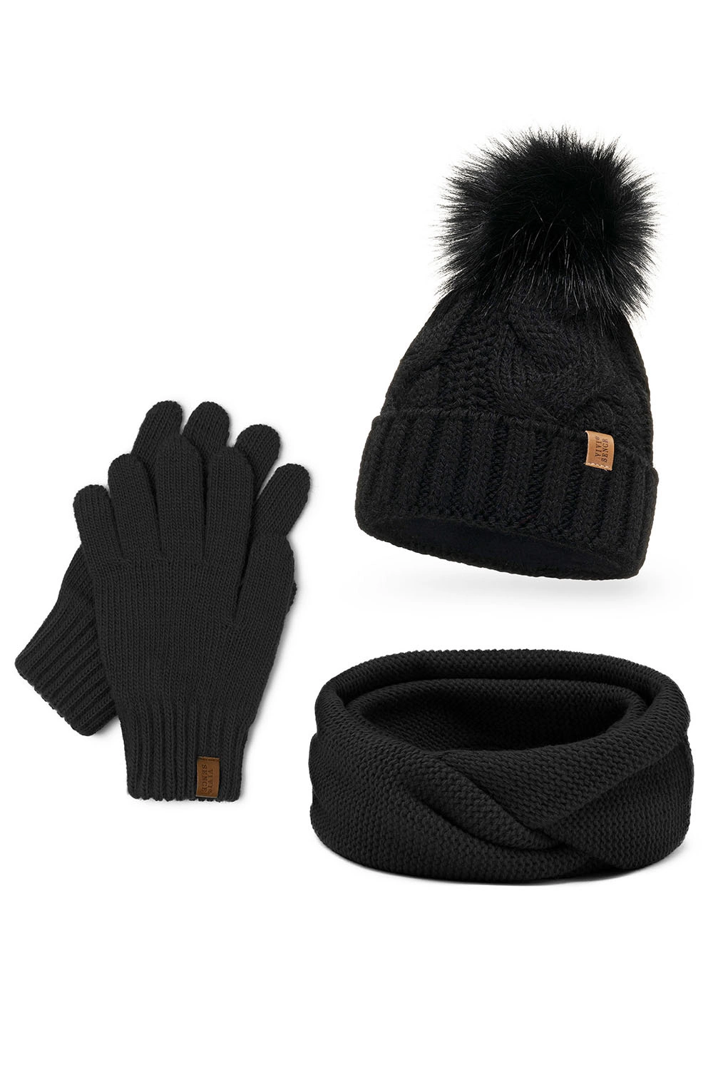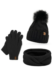 Modny komplet: czapka z pomponem, komin i rękawiczki.