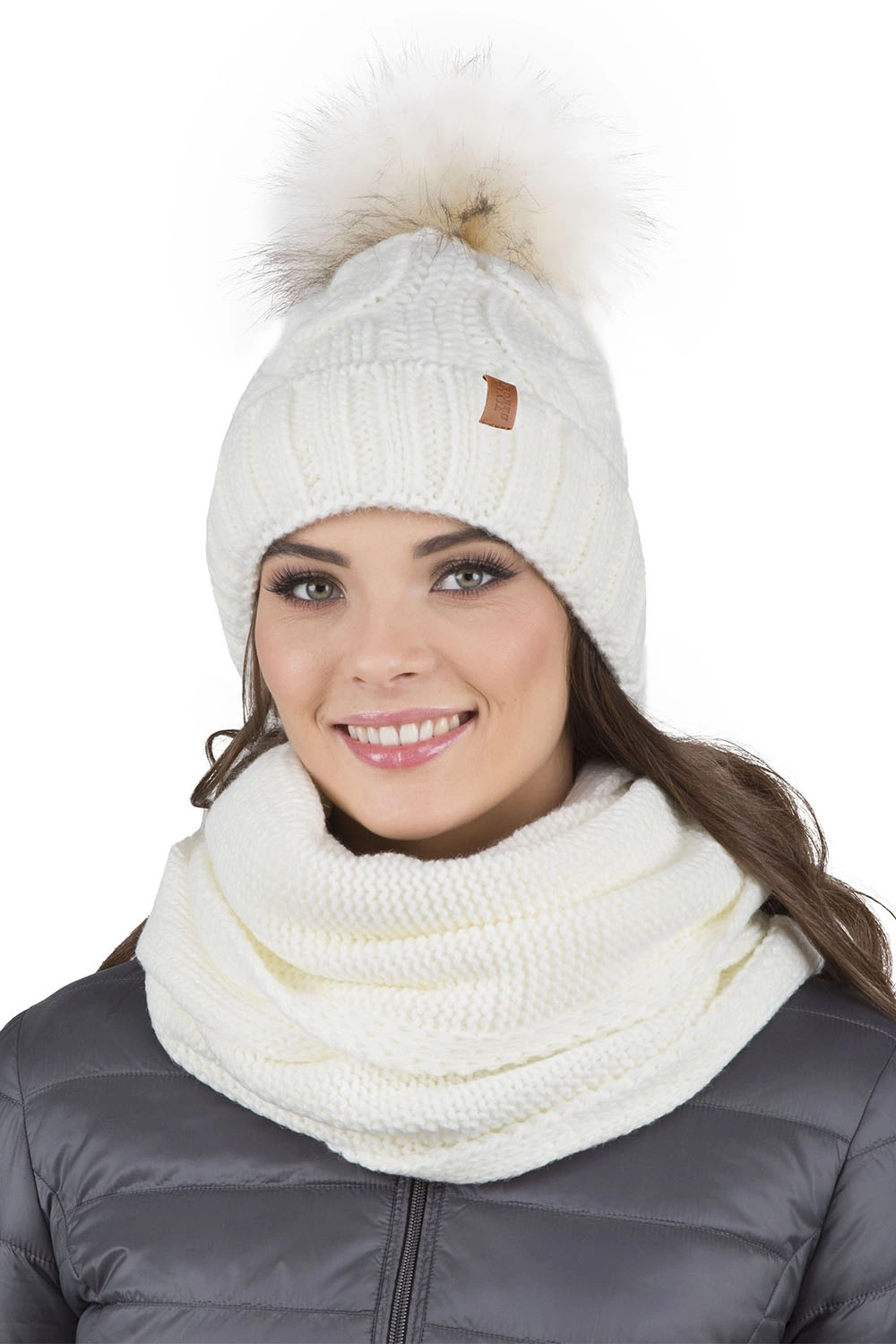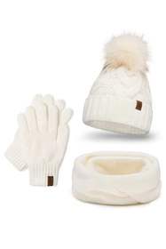 Modny komplet: czapka z pomponem, komin i rękawiczki.