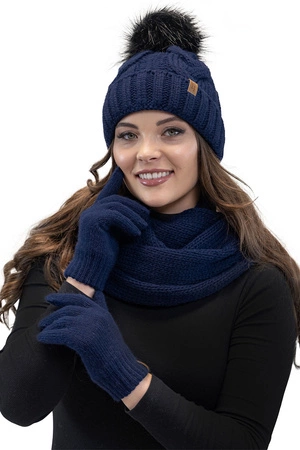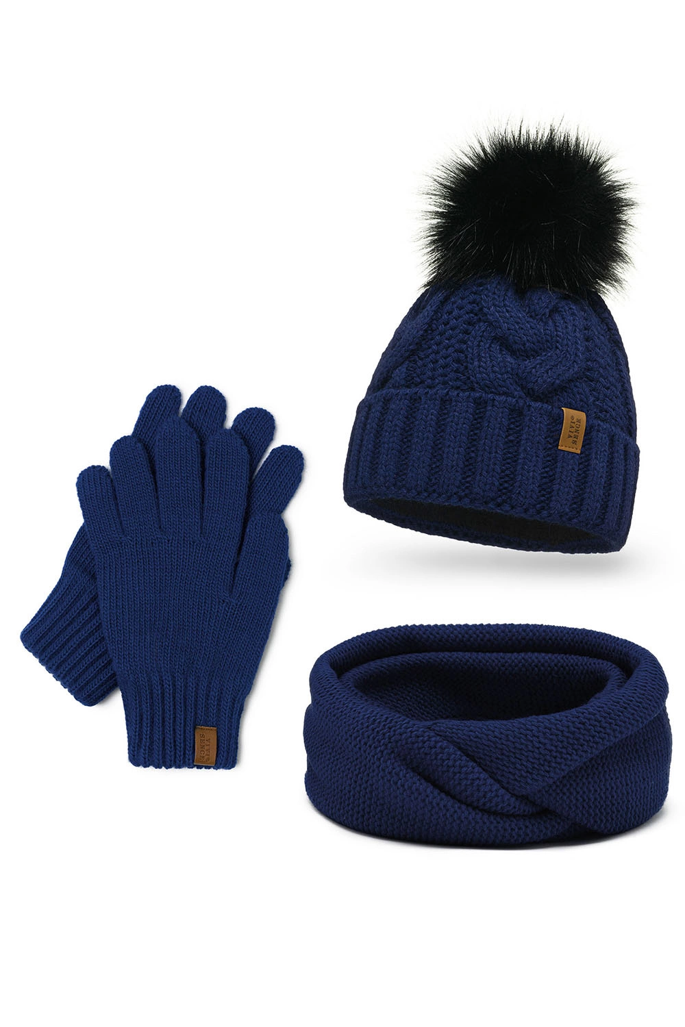 Modny komplet: czapka z pomponem, komin i rękawiczki.