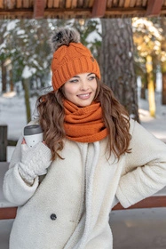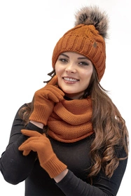 Modny komplet: czapka z pomponem, komin i rękawiczki.
