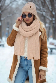 Zestaw zimowy z wełną merino- czapka + szalik.
