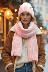 Zestaw zimowy z wełną merino- czapka + szalik.