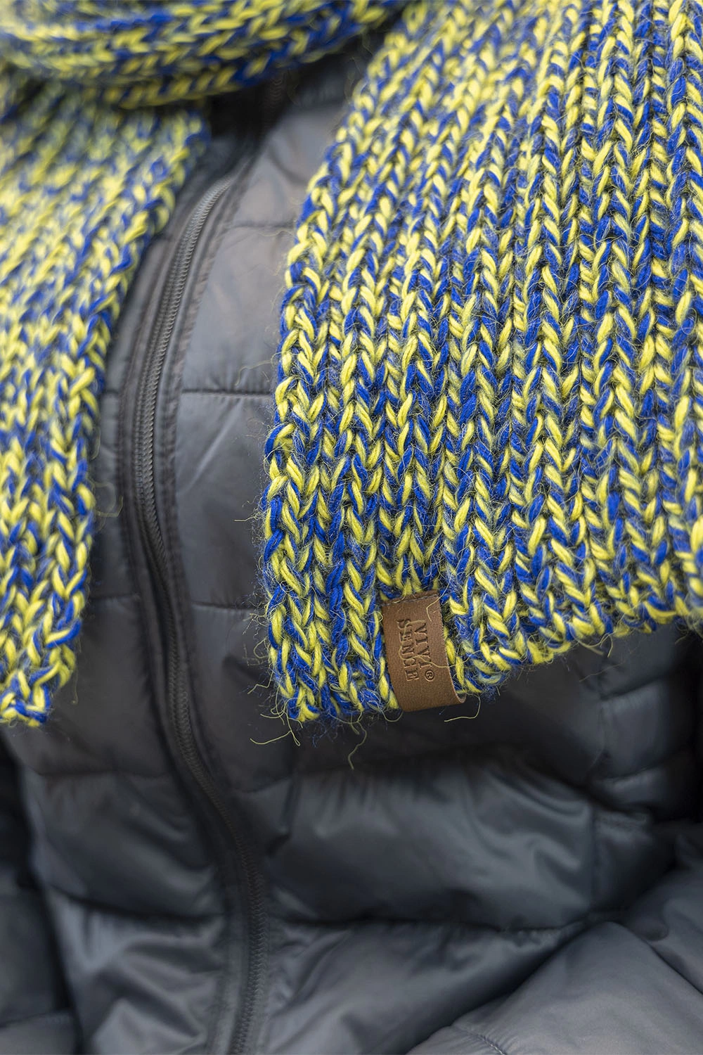 - wykonany jest z ciepłej, dwukolorowej przędzy