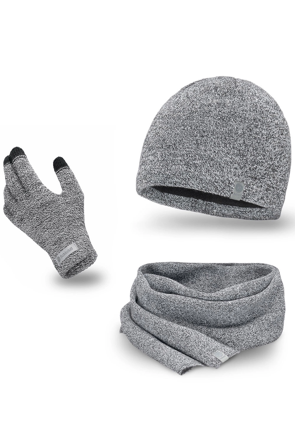 - czapka, szalik i rękawiczki wykonane są z ciepłej, gładkiej przędzy