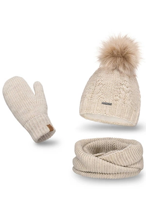 - czapka, komin i rękawiczki wykonane są z ciepłej przędzy