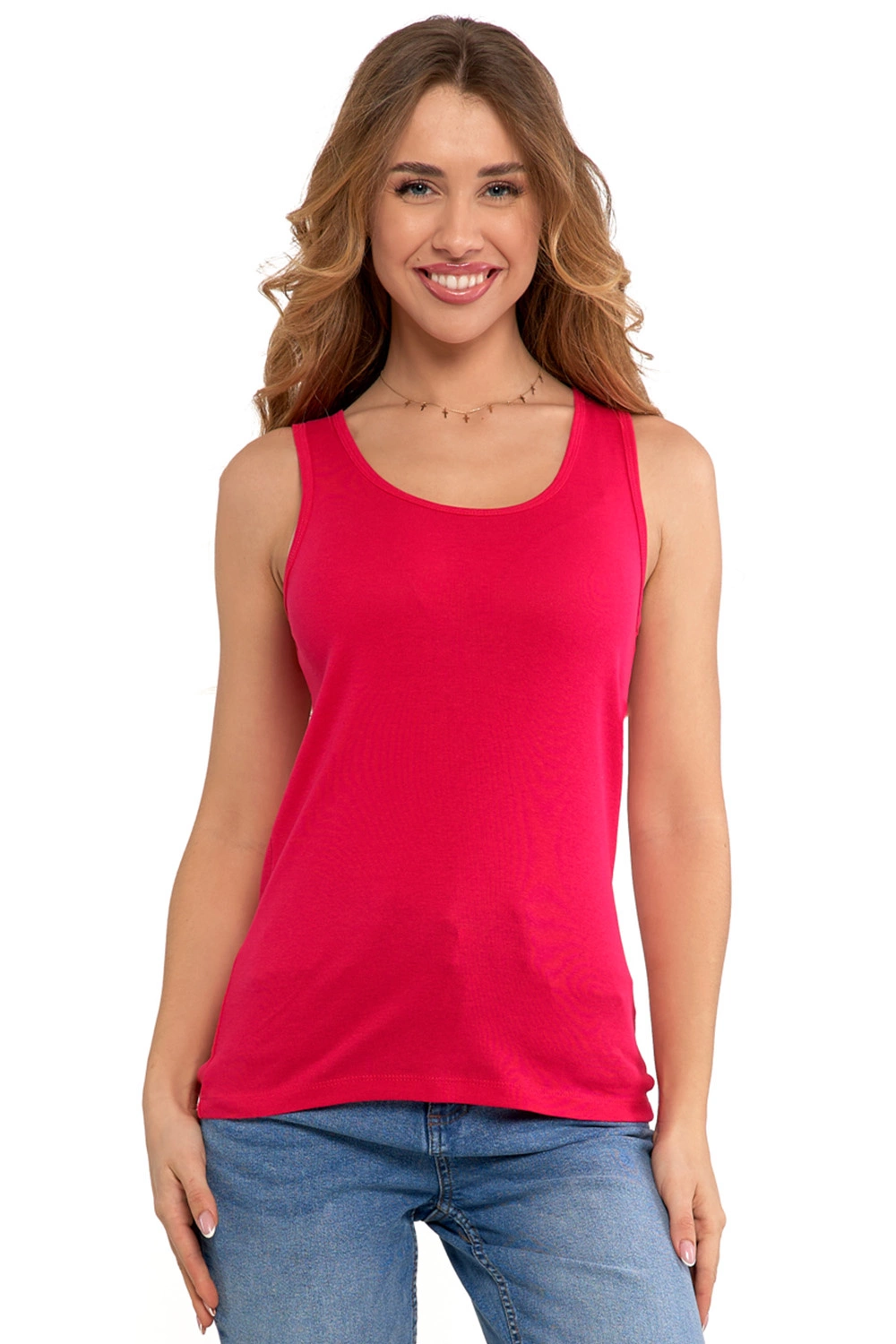 Komfortowa bluzeczka na ramiączkach, bez rękawka. Elastyczna, przyjemna w dotyku bawełna ładnie dopasowuje się do sylwetki. Bluzka wykonana jest z delikatnie prążkowanej, bawełnianej dzianiny. Model bardzo starannie wykonany. Przewiewny i bardzo wygodny, doskonale podkreśla kobiece kształty.