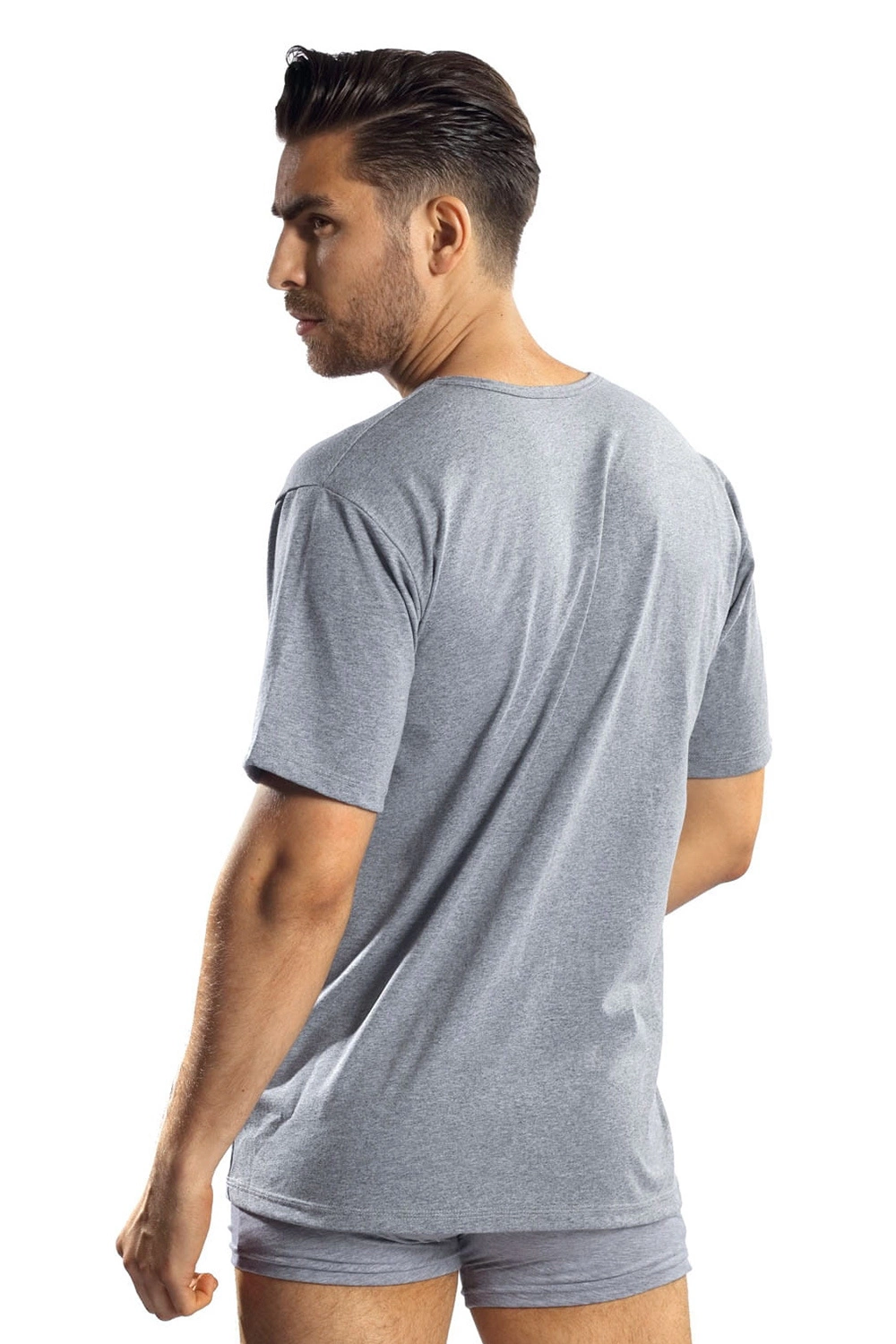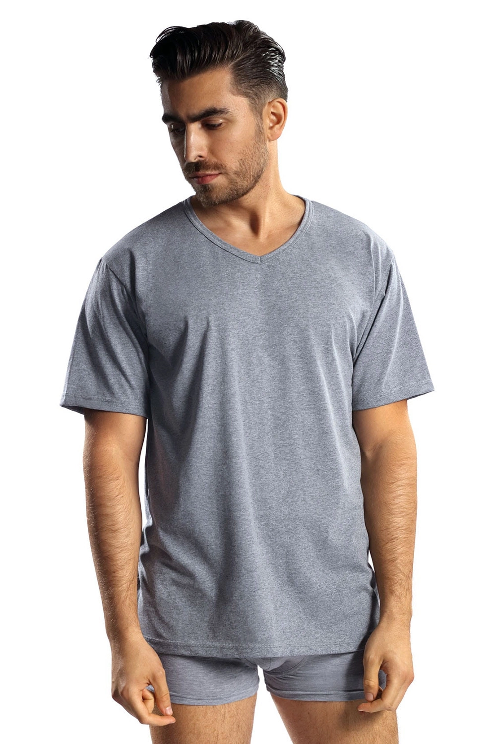 Męski t-shirt Reviver F5571 T2 to uniwersalna baza do codziennych stylizacji. Miękka dzianina z wysoką zawartością bawełny zapewnia przyjemny kontakt ze skórą, a dodatek elastanu sprawia, że materiał pracuje z ciałem i dobrze układa się podczas ruchu. Klasyczny dekolt w serek porządkuje linię szyi i dobrze wygląda solo lub pod koszulą. Krótki rękaw i gładkie wykończenie sprawiają, że to model łatwy do zestawienia zarówno z jeansami, jak i pod warstwy. Prosty, czysty front bez nadruków podkreśla ponadczasowy, minimalistyczny charakter. Obszycie przy dekolcie stabilizuje kształt i zwiększa trwałość noszenia. Gładka, jednorodna powierzchnia materiału sprawdza się jako pierwsza warstwa pod sweter lub marynarkę. To praktyczna koszulka na co dzień, która łączy wygodę, swobodę ruchów i estetykę bez zbędnych dodatków.