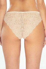 Tył podkreśla efektowna koronka w fantazyjnym motywie z lekko błyszczącą nitką, która nadaje romantyzmu i elegancji.