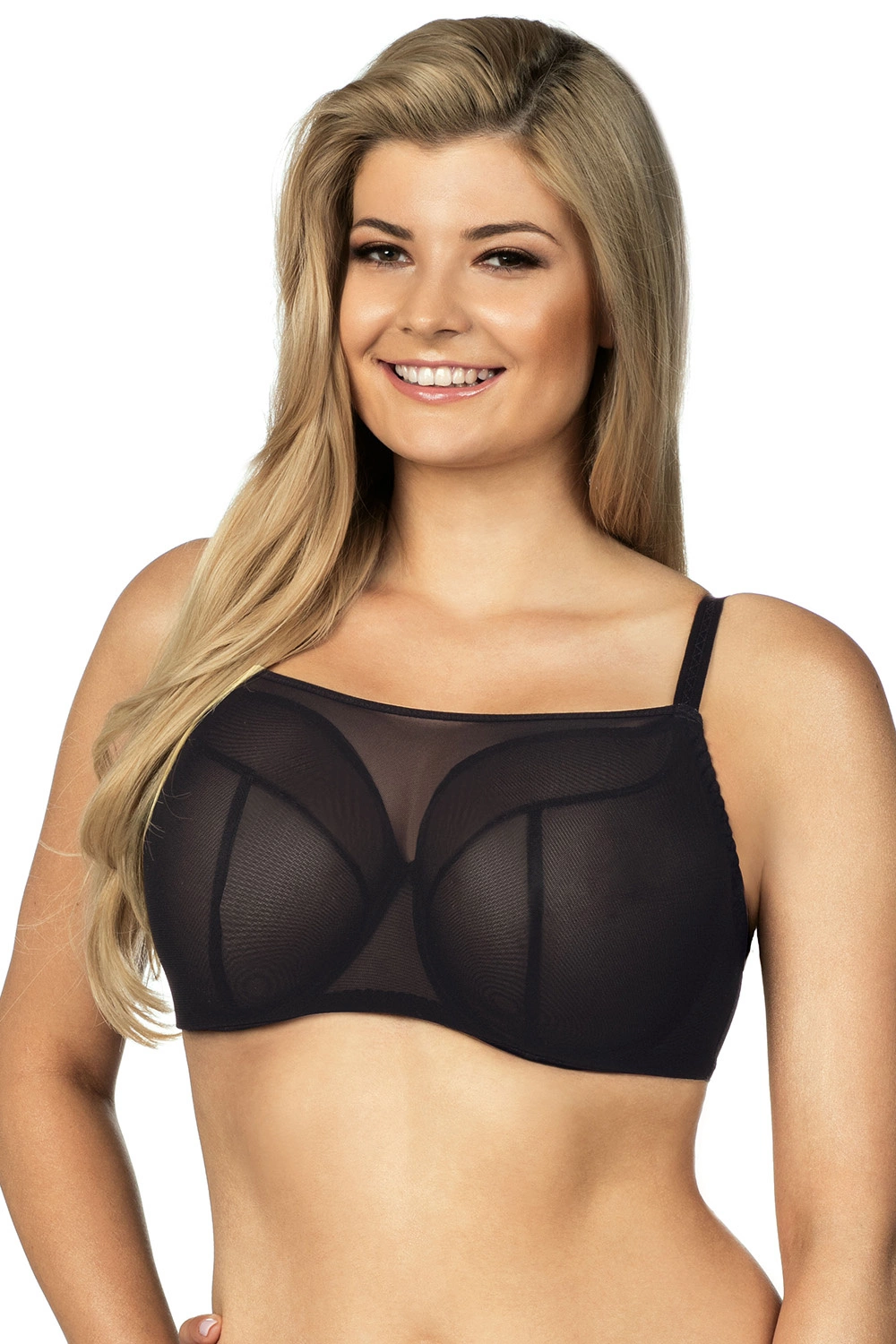 Zniewalający biustonosz 2 w 1, czyli połączenie miękkiego biustonosza i topu. Zachwyca swoim seksownym i wyrafinowanym stylem. Dopracowana konstrukcja, w tym pionowe cięcie miseczek, doskonale unosi oraz formuje biust. Elastyczne boczki idealnie przylegają do ciała zapewniając komfort noszenia. Miseczki i boczki wykonane z delikatnej siateczki tiulowej. Plecy z elastycznej lycry.