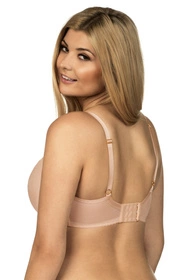 Biustonosz miękki Lupoline 137 w beżowym kolorze i gładkim wykończeniu, to doskonałe połączenie elegancji i komfortu. Wysoki mostek i boczne fiszbiny zapewniają optymalne wsparcie. Elementy haftu uzupełniają estetykę biustonosza, a kokardka między miseczkami dodaje mu uroku.