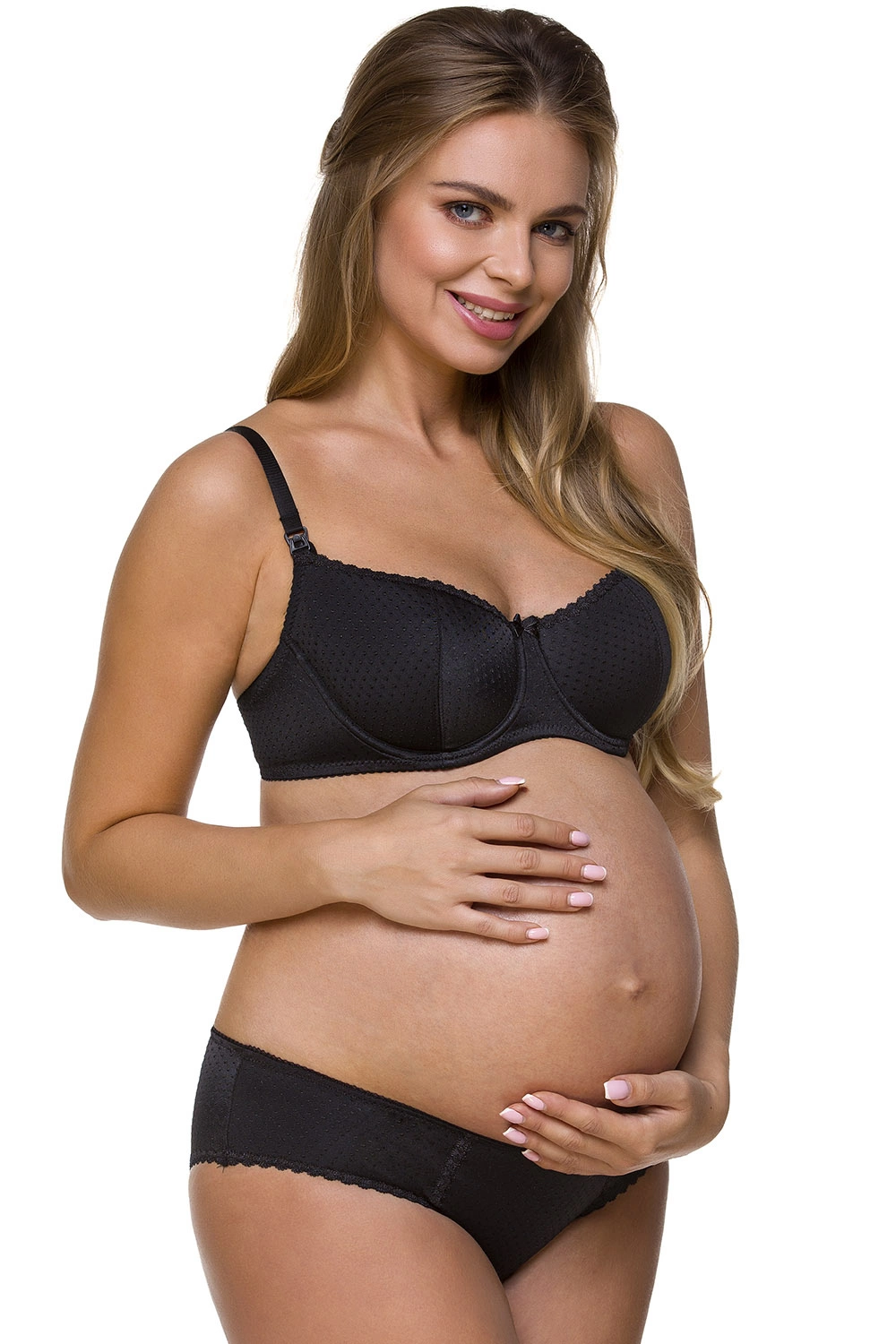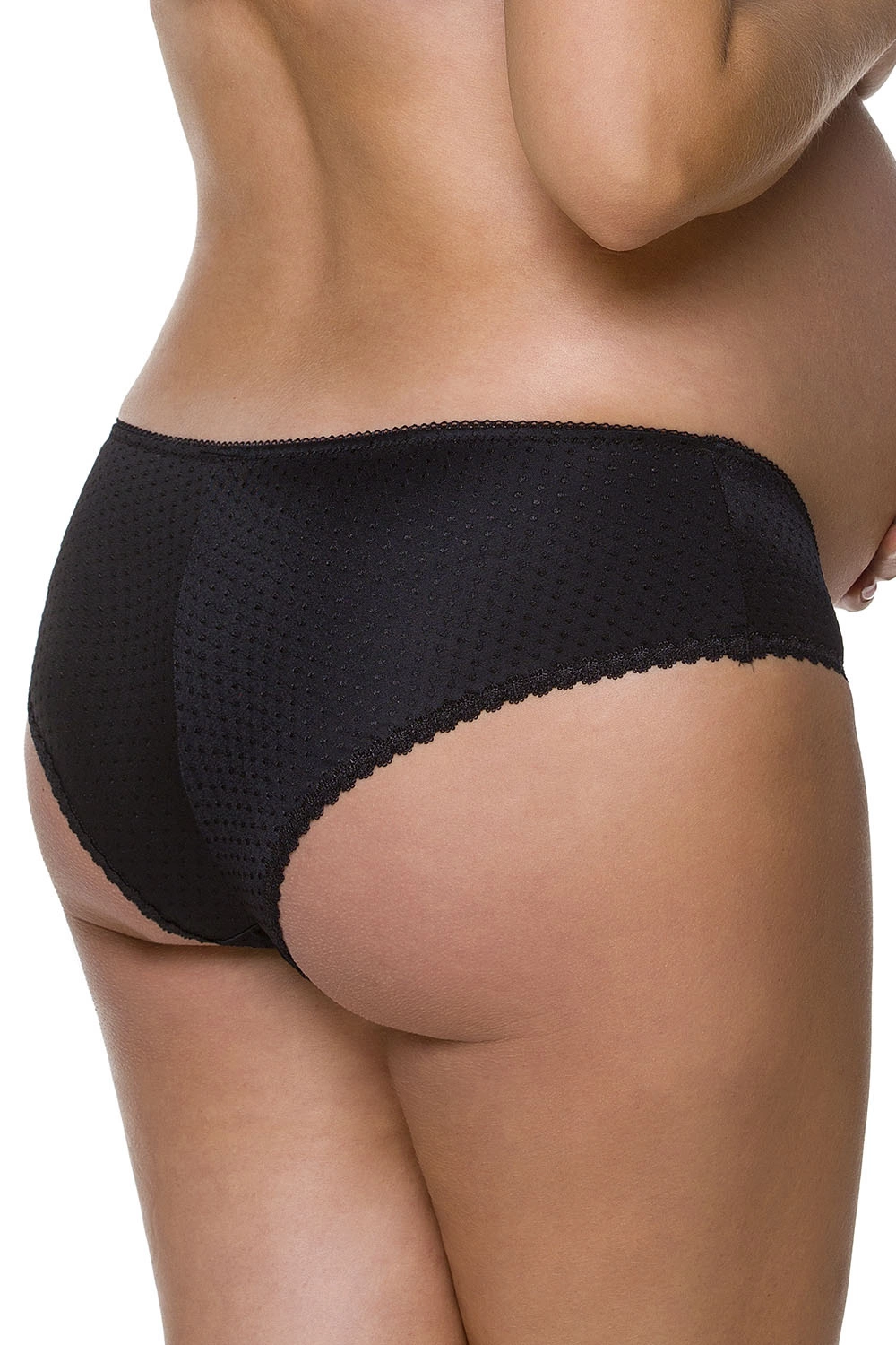 Eleganckie figi wykonane z mikrofibry w drobne kropeczki. Nogawki wykończone są delikatną gumokoronką.