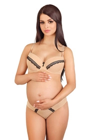 Biustonosz do karmienia Lupoline 1747 w klasycznym beżowym kolorze. Wysoki mostek i gładki tył biustonosza zapewniają komfort i wsparcie, które są niezbędne w codziennym użytkowaniu. Czarne wstawki z koronki dodają mu intrygującego kontrastu i zmysłowej elegancji.