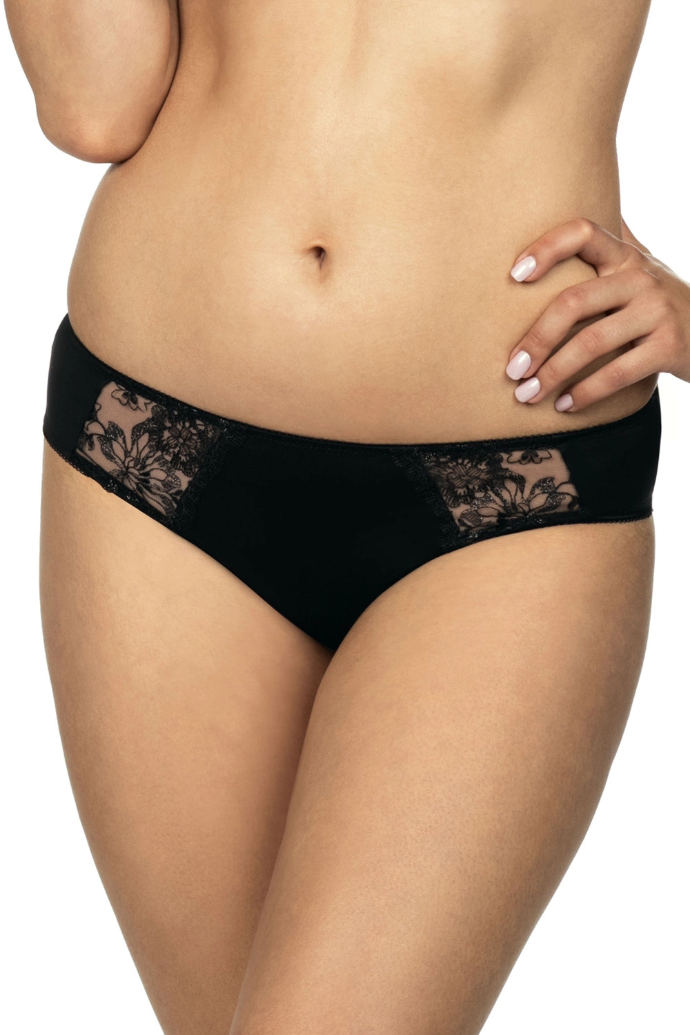 Majtki figi Lupoline 2065 w odcieniu tajemniczej czerni, są kwintesencją elegancji i komfortu. Niewątpliwym atutem tych majtek jest ich delikatna koronka, dodająca urokliwego charakteru. Ten produkt, doceniany przez wiele kobiet, zapewnia codzienne poczucie wygody i luksusu.