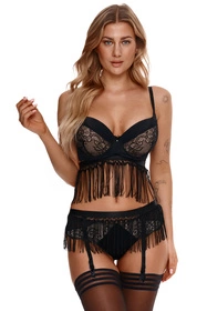 - dół biustonosza zdobi pasek z frędzelkami z możliwością przypinania i odpinania