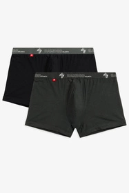 W opakowaniu znajdują się dwie pary bokserek męskich w różnych kolorach.