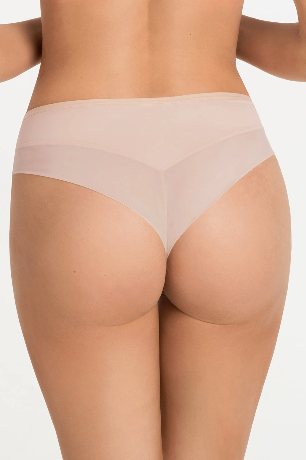 Eleganckie brayzliany. Wykonane z miękkiej mikrofibry ozdobionej z przodu wstawkami z siateczki tiulowej. Model z wyższymi boczkami. Tył gładki. Z tyłu nogawki wykończone są podwójnie złożonym tiulem elastycznym.