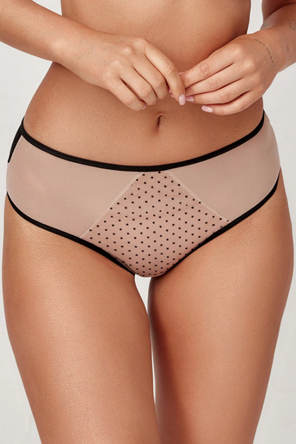 • przód wykonany z siateczki w kropeczki, podszytej dodatkową siateczką