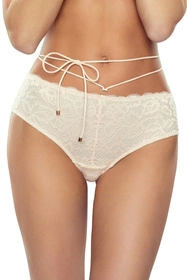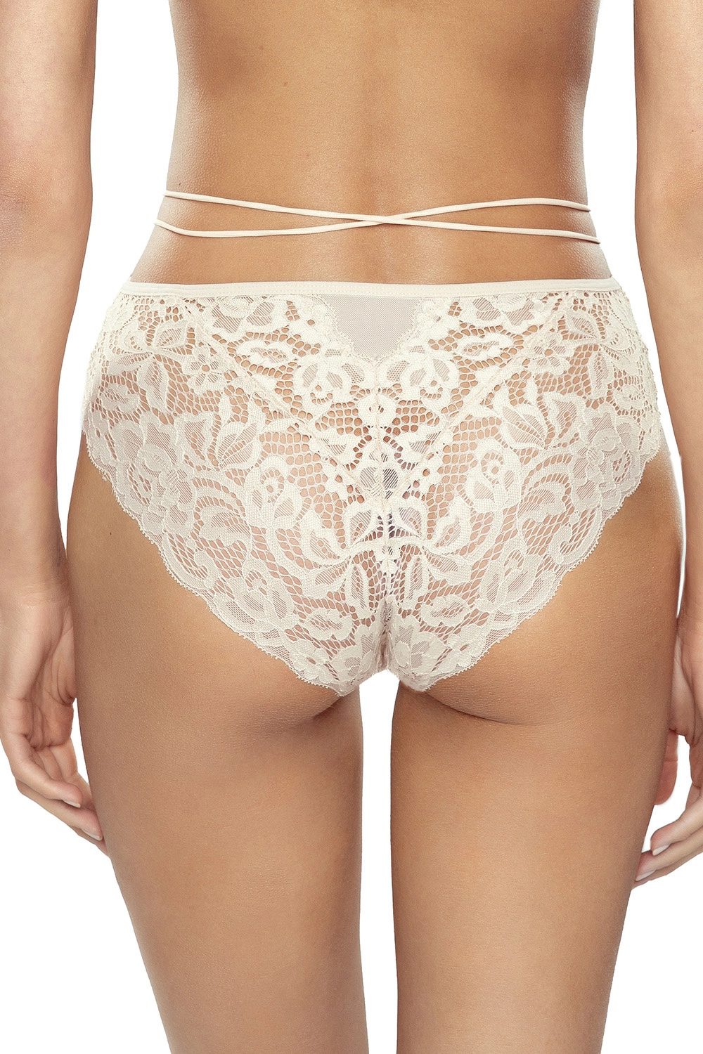 Wyjątkowo eleganckie i komfortowe figi damskie idealne dla każdej sylwetki.W pasie od wewnątrz doszyta delikatna gumka przytrzymująca. Całość wykonana z efektownej koronki z kwiatowym motywem. Przód od wewnętrznej strony, podszyty elastyczną, maskującą siateczką.