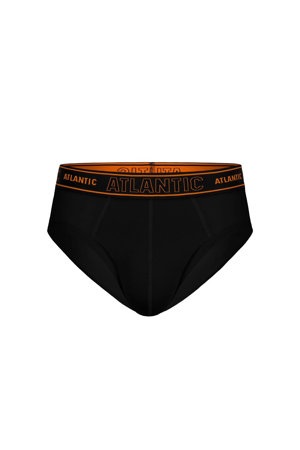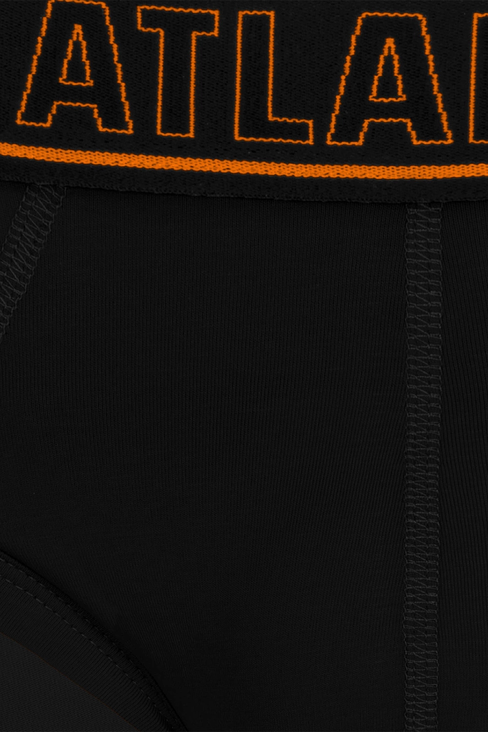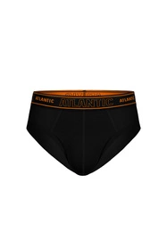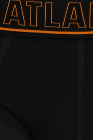 Slipy o sportowym charakterze odznaczają się dość wysoko podkrojonymi bokami oraz niską talią wykończoną szeroką i miękką w dotyku gumą ze sporych rozmiarów napisami ATLANTIC.
